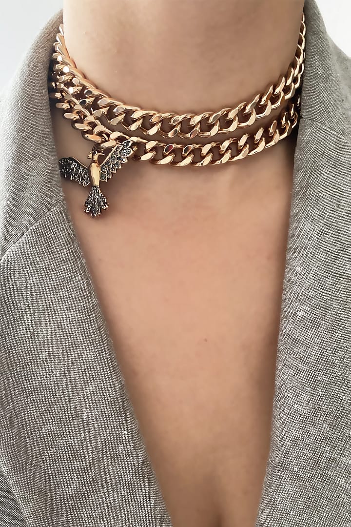 Necklace is rhodium plated, you can use it without tarnishing, the black parts on the tip used are created with a special enamel technique, the stones used in the decoration are zircon. The length of the necklace is 16.5 inch.