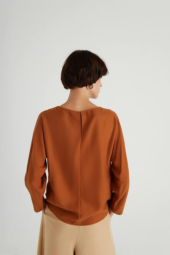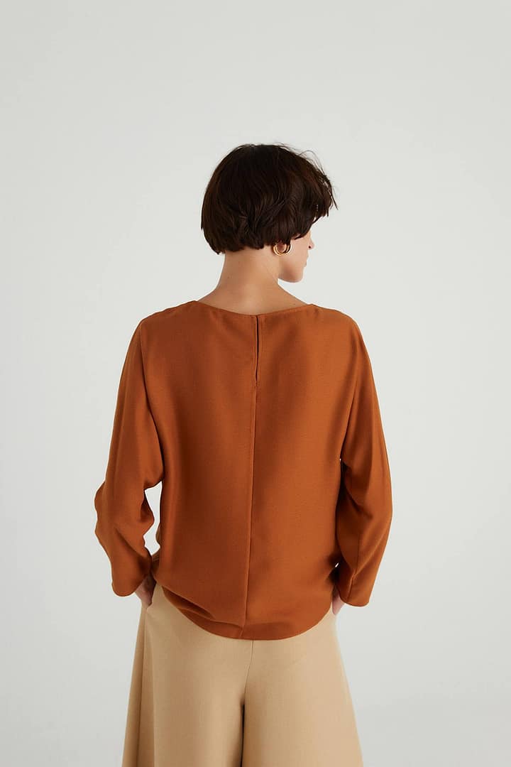 | Blouse With A Flowing Neckline And Long Sleeves. %65 Pess. %35 Viscon Model: Height: 180 Chest: 85 Waist: 61 Hips: 89/36 |