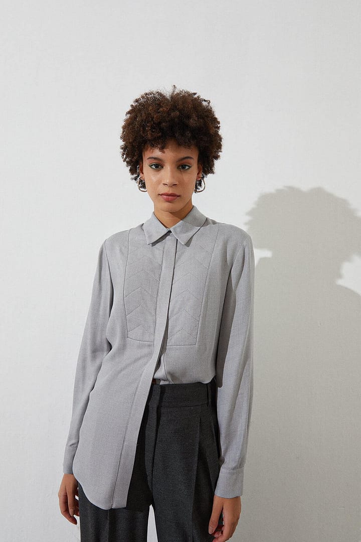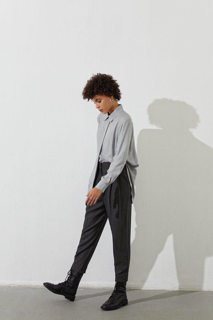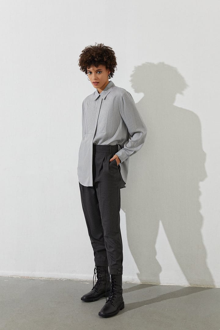 High-Waist Trousers With Double Waistband And Contrasting Stitched Details. Zip Fly And Metal Snap Front Fastening. %66 Acrylic %26 Viscon %5 Wool %3 Elastan
