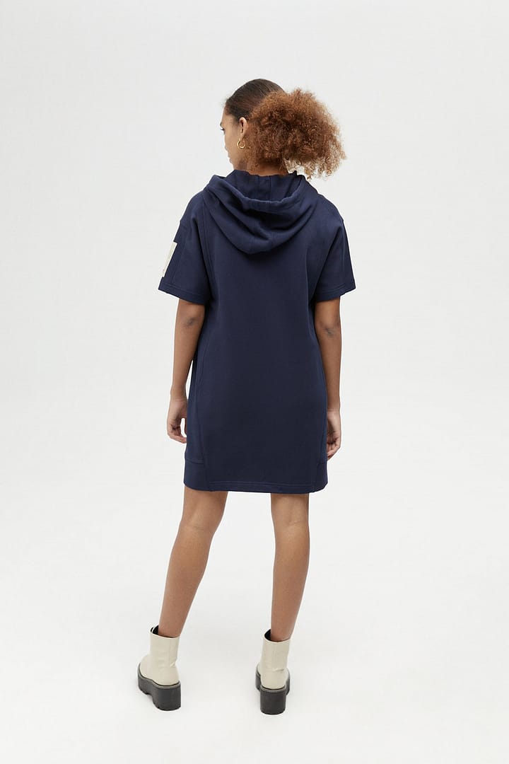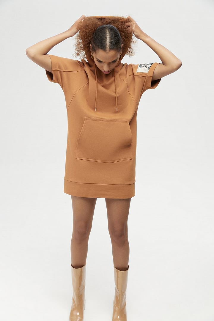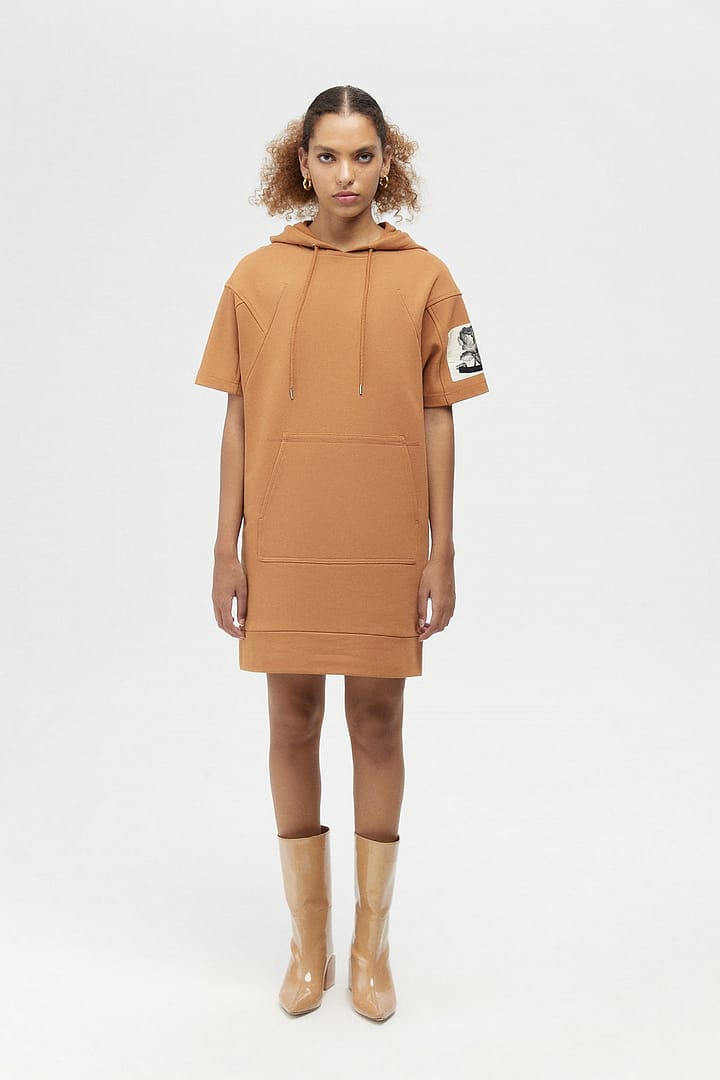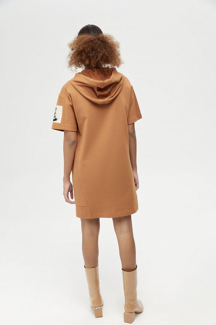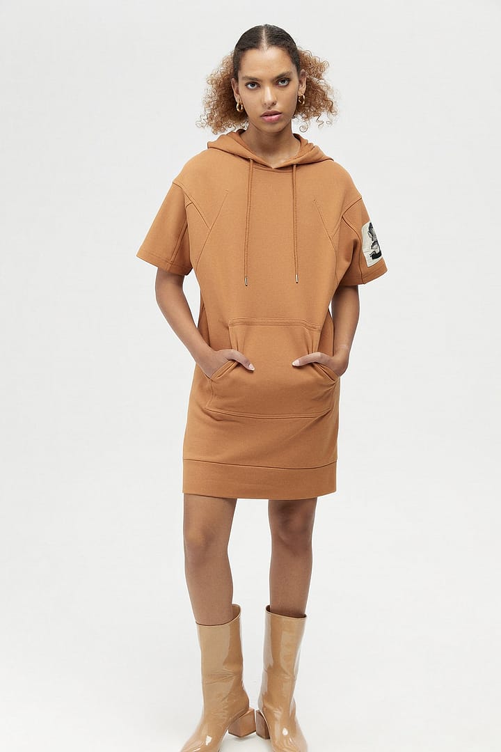 | Short Sleeves Side Pockets Print Detailed Hooded Sweatshirt Dress |