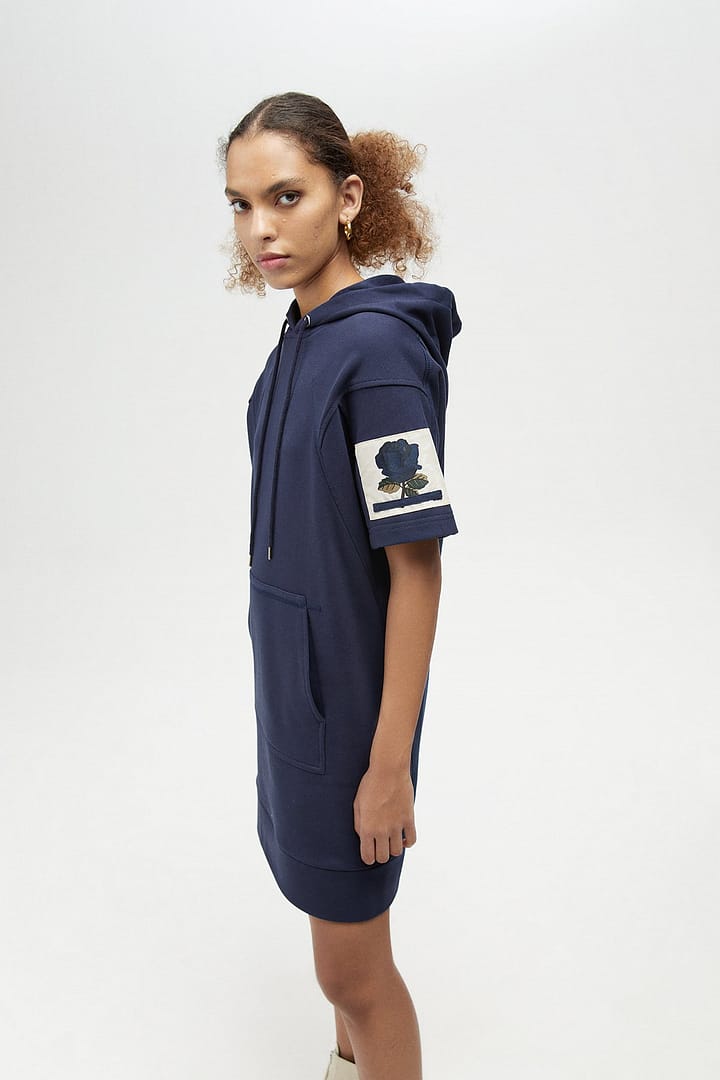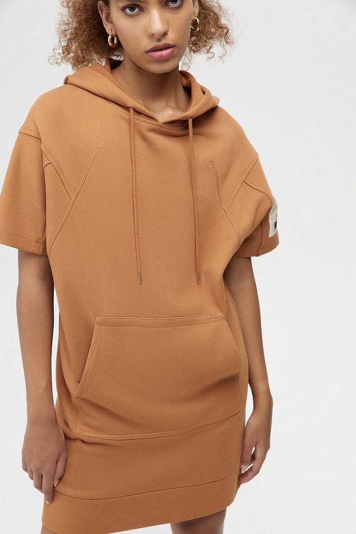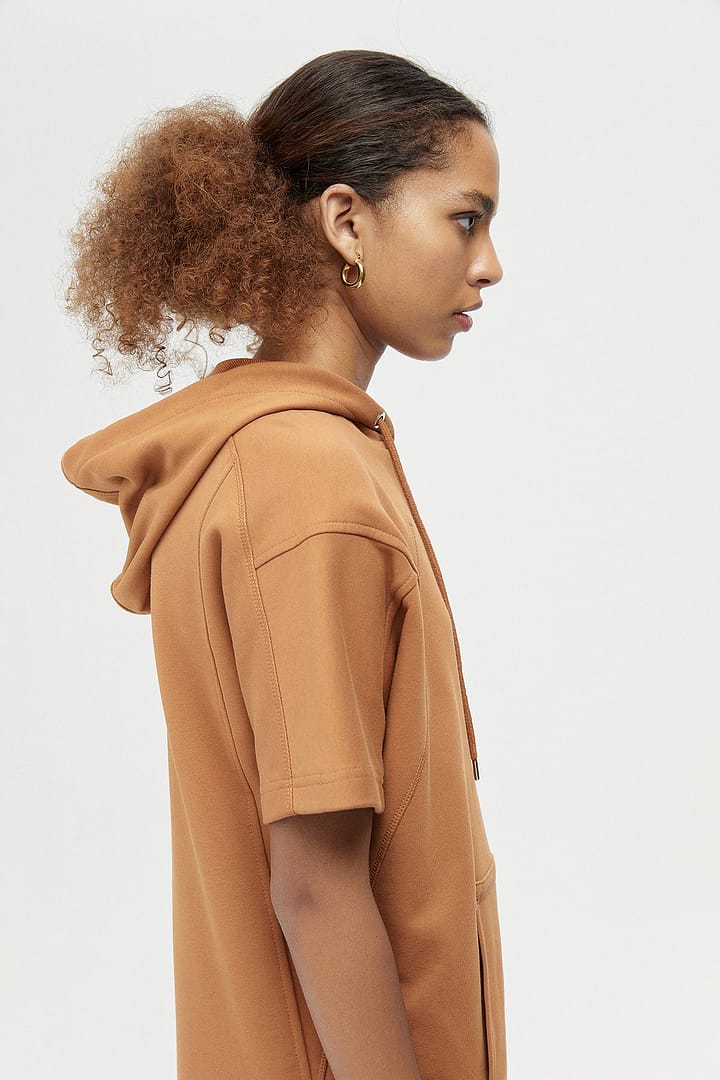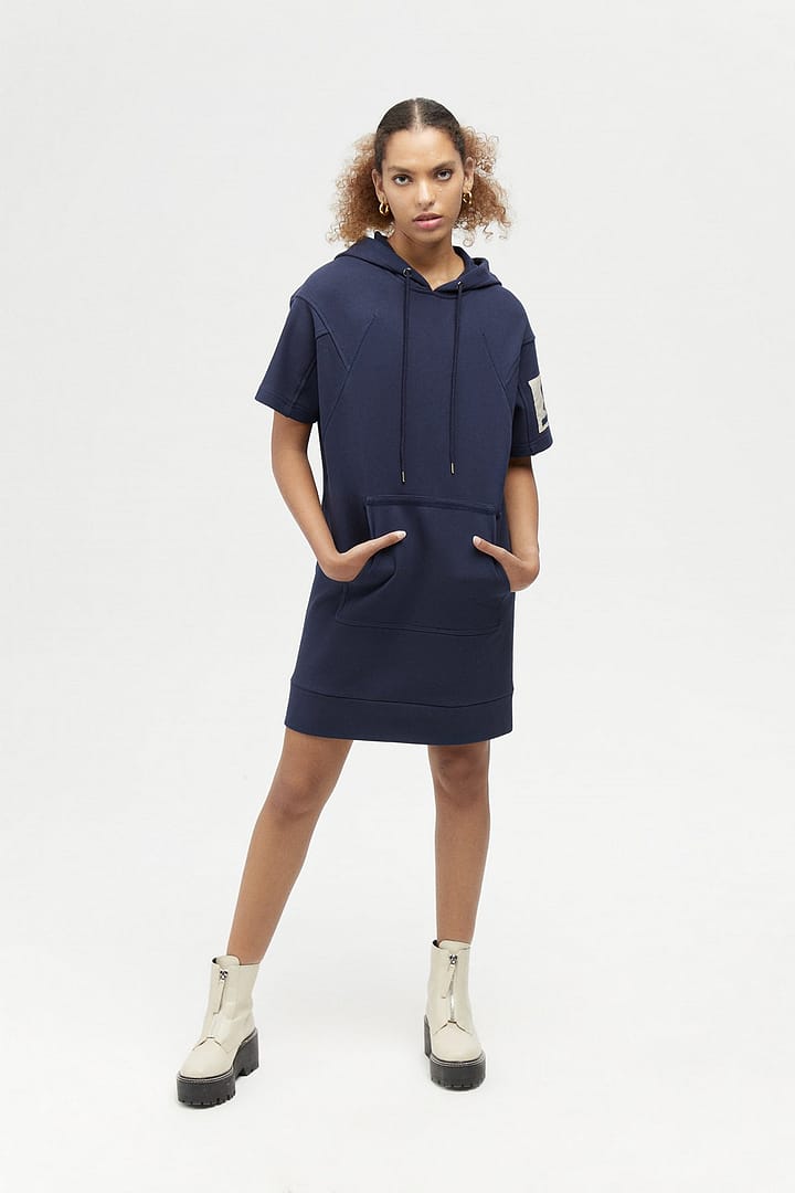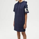 | Short Sleeves Side Pockets Print Detailed Hooded Sweatshirt Dress |