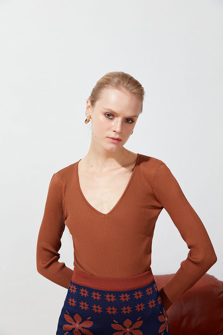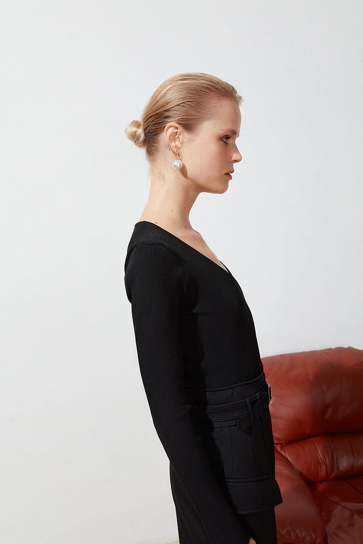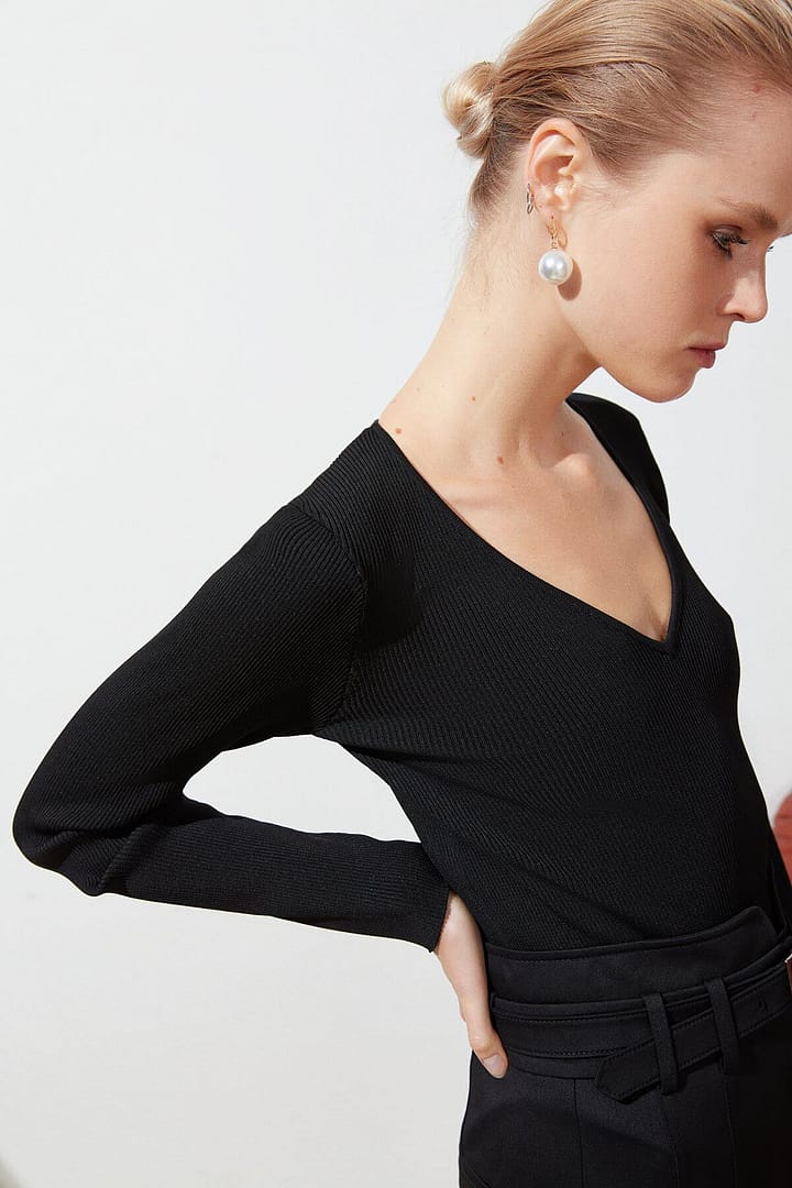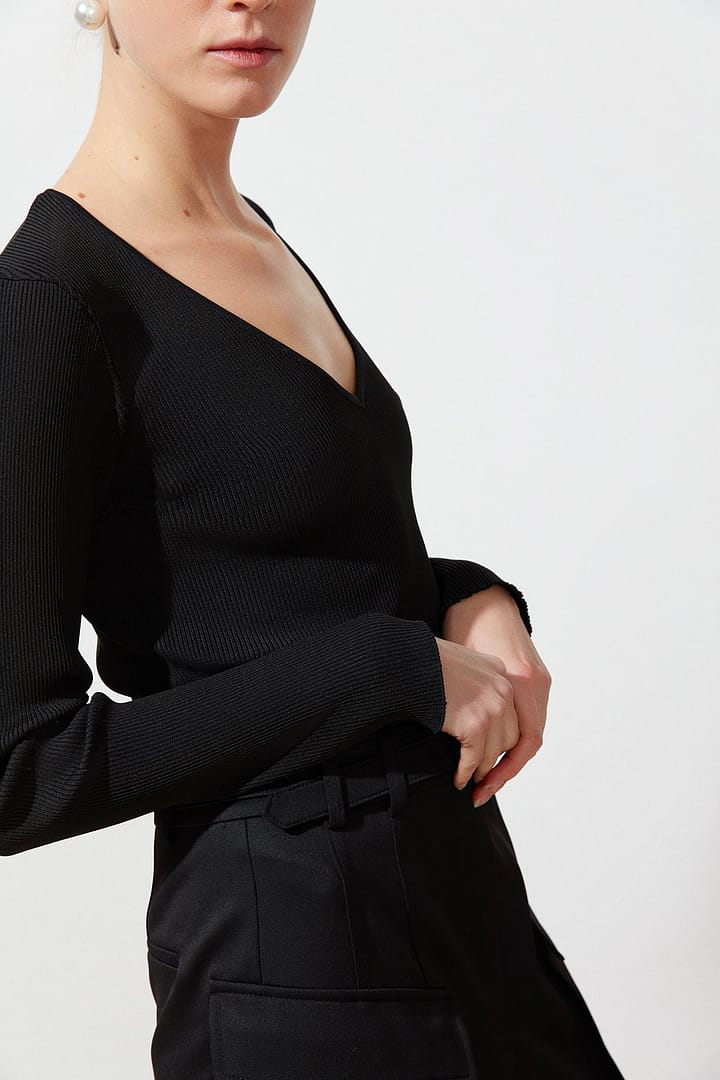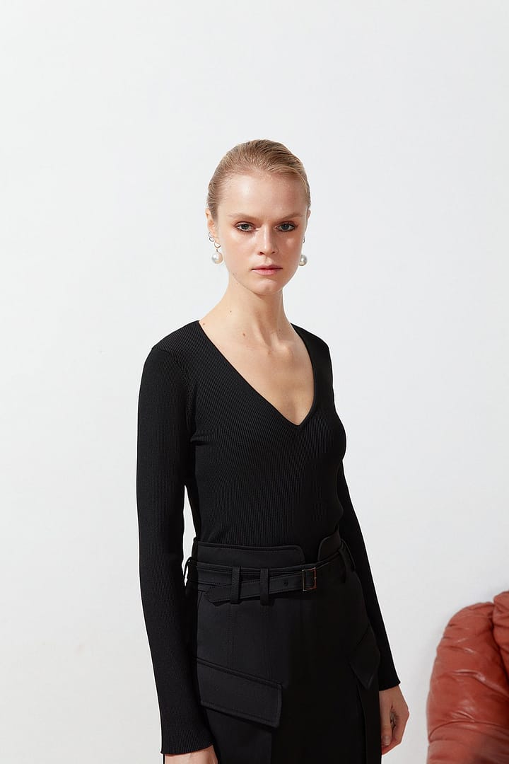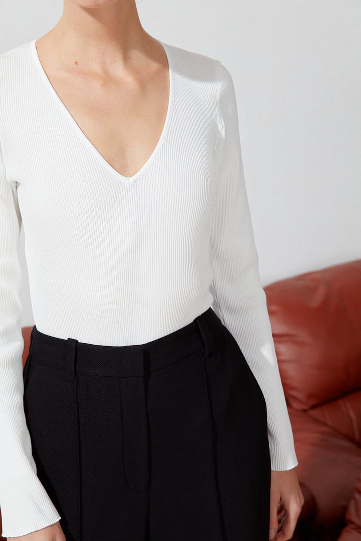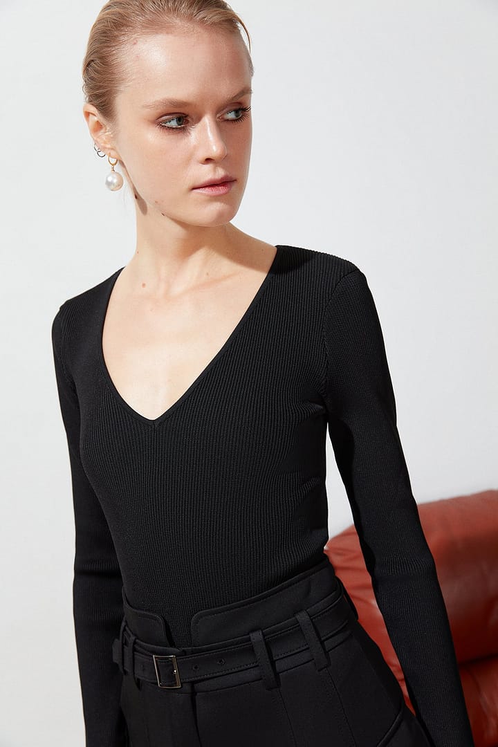 | Bodysuit with a V Neck Long Sleeves Snap Button Fastening at the Bottom |