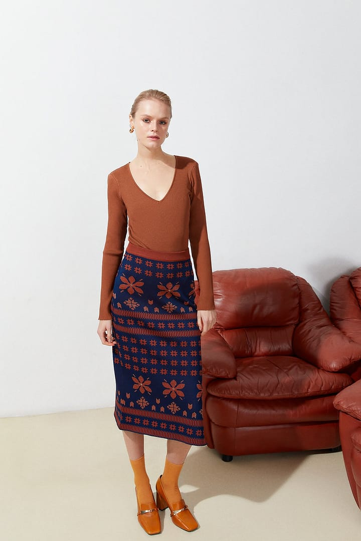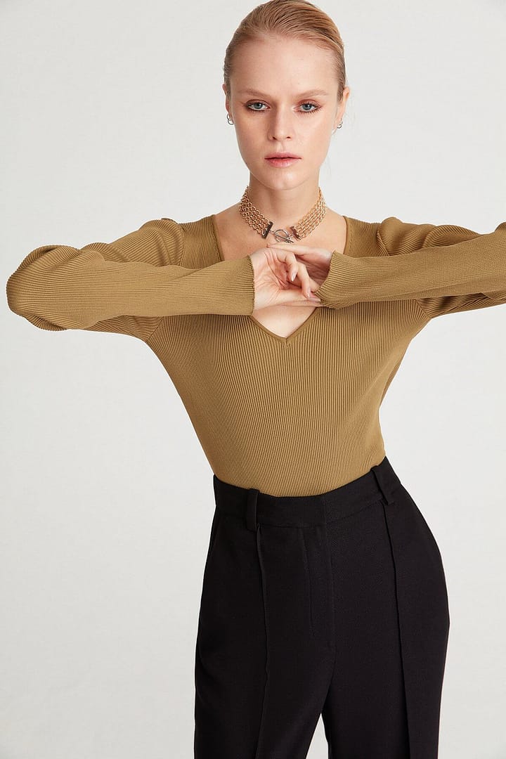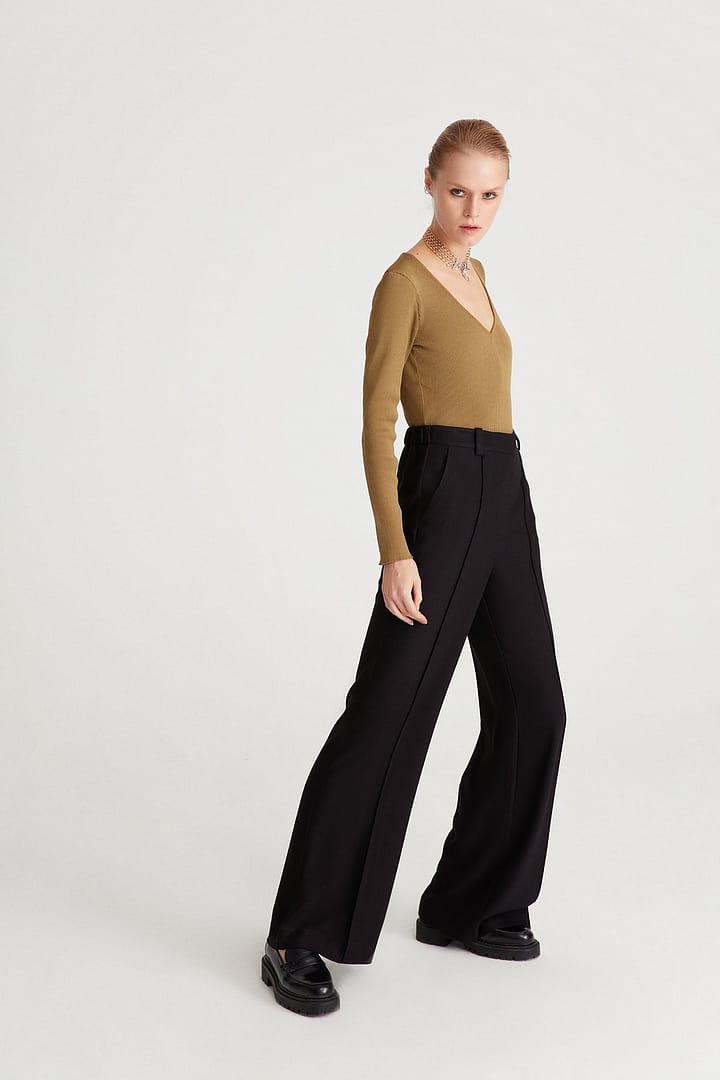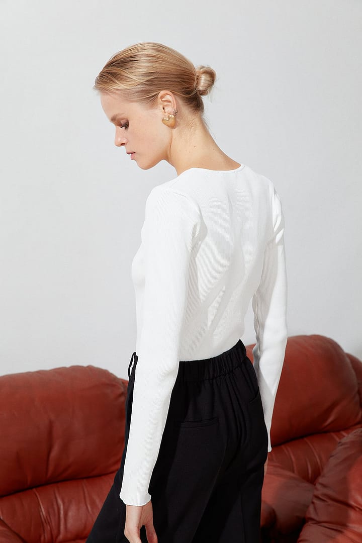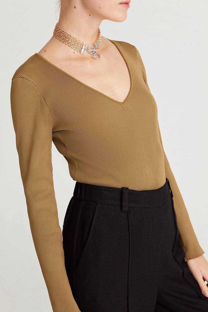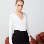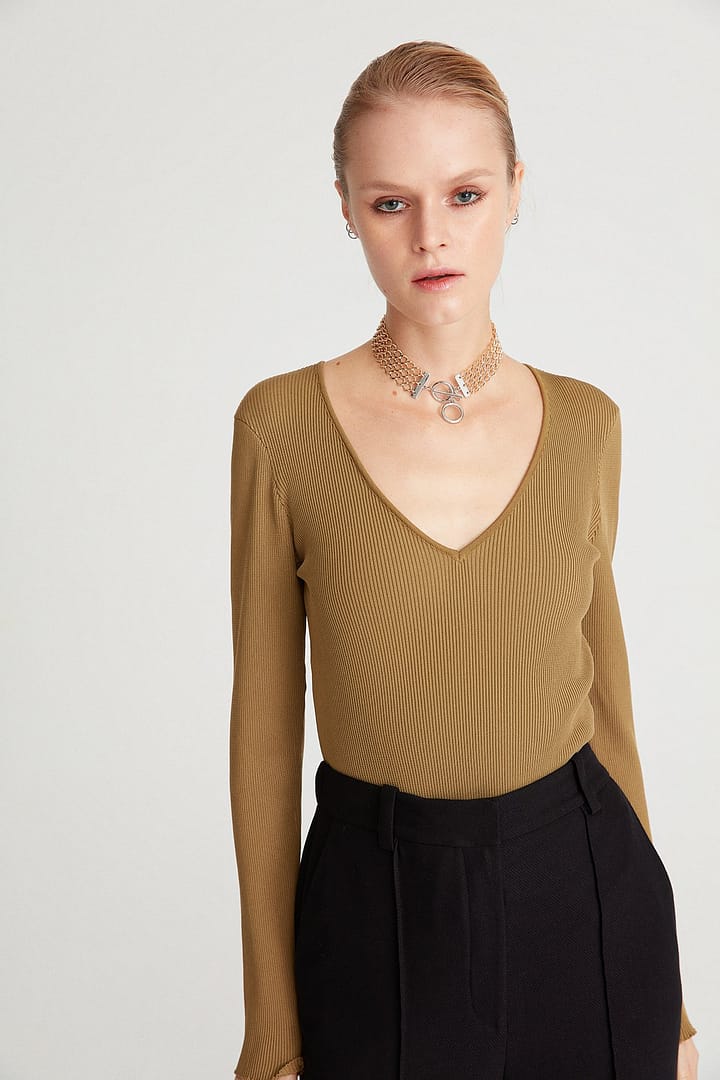 | Bodysuit with a V Neck Long Sleeves Snap Button Fastening at the Bottom |