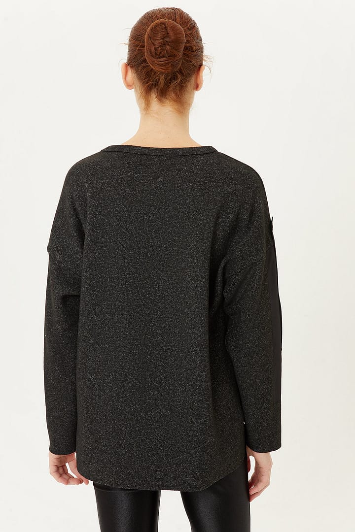 Long Sleeves Round Neckline Button Detailed