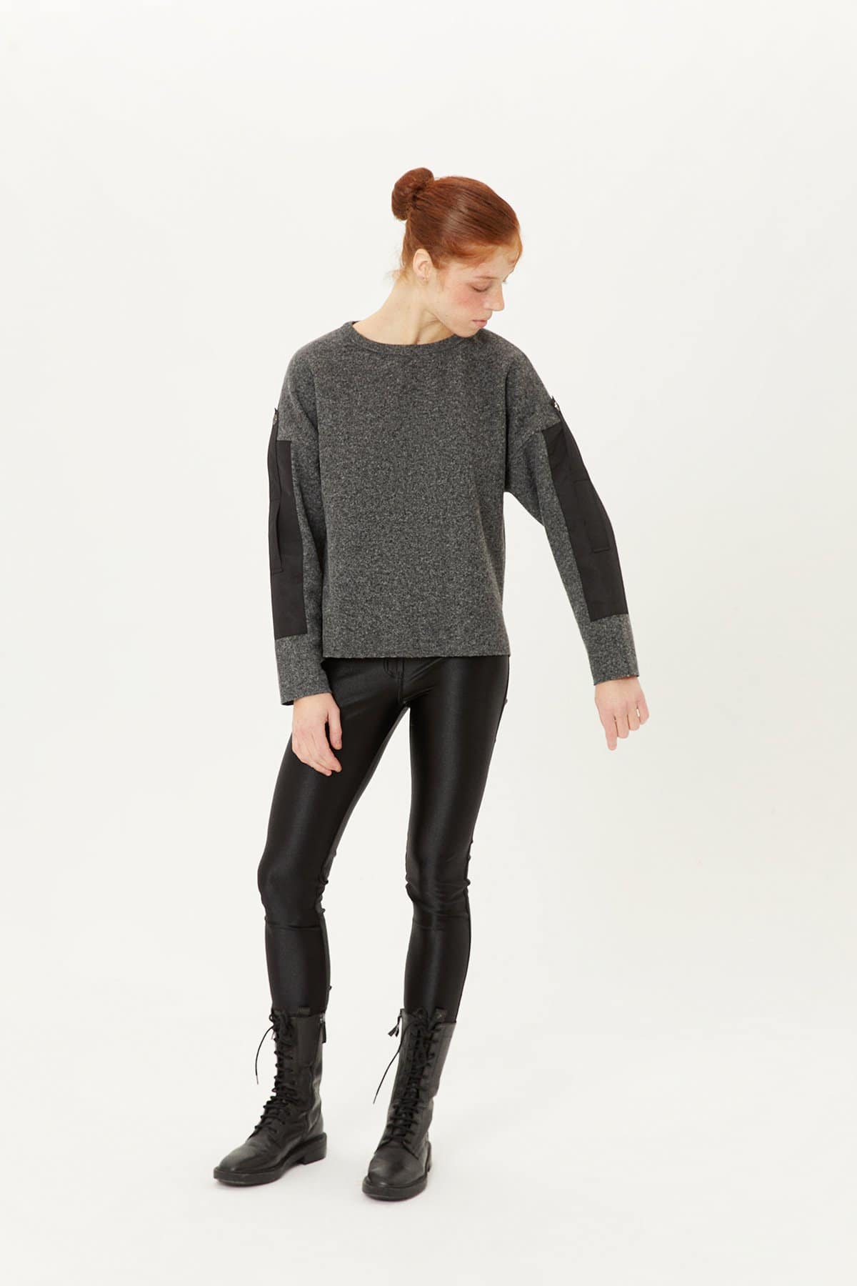 Bodysuit with a V Neck Long Sleeves Snap Button Fastening at the Bottom