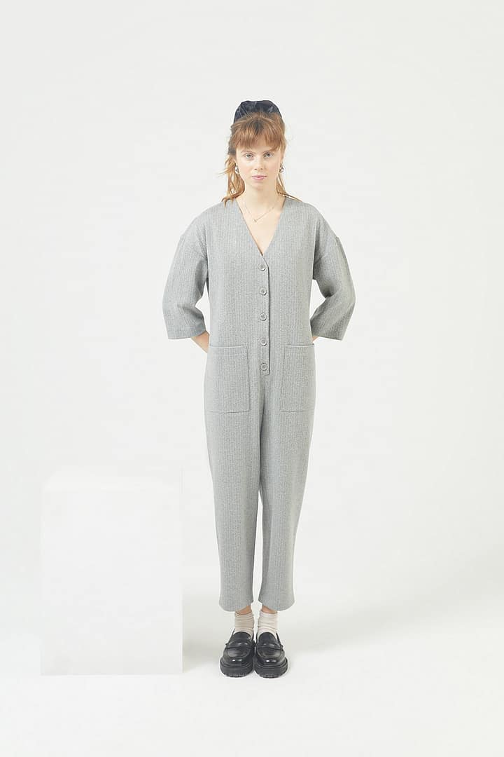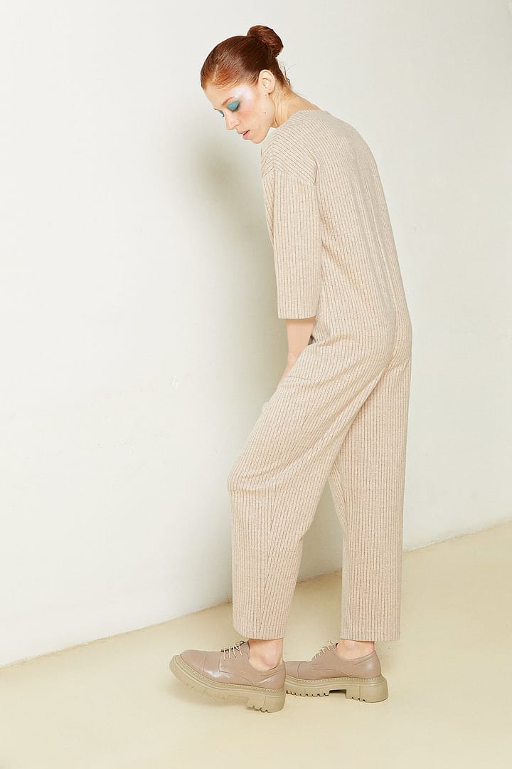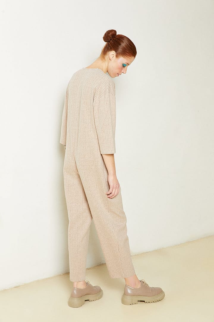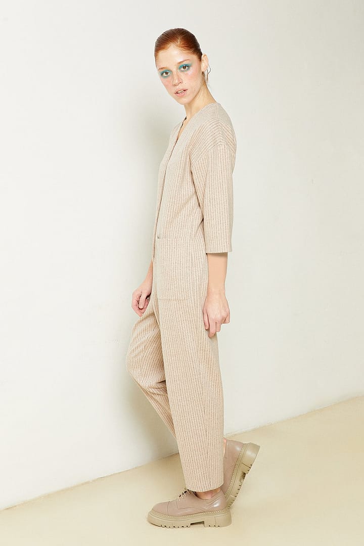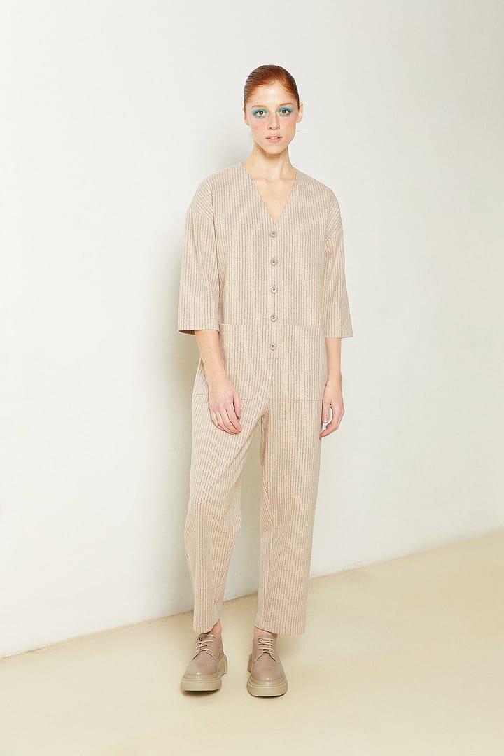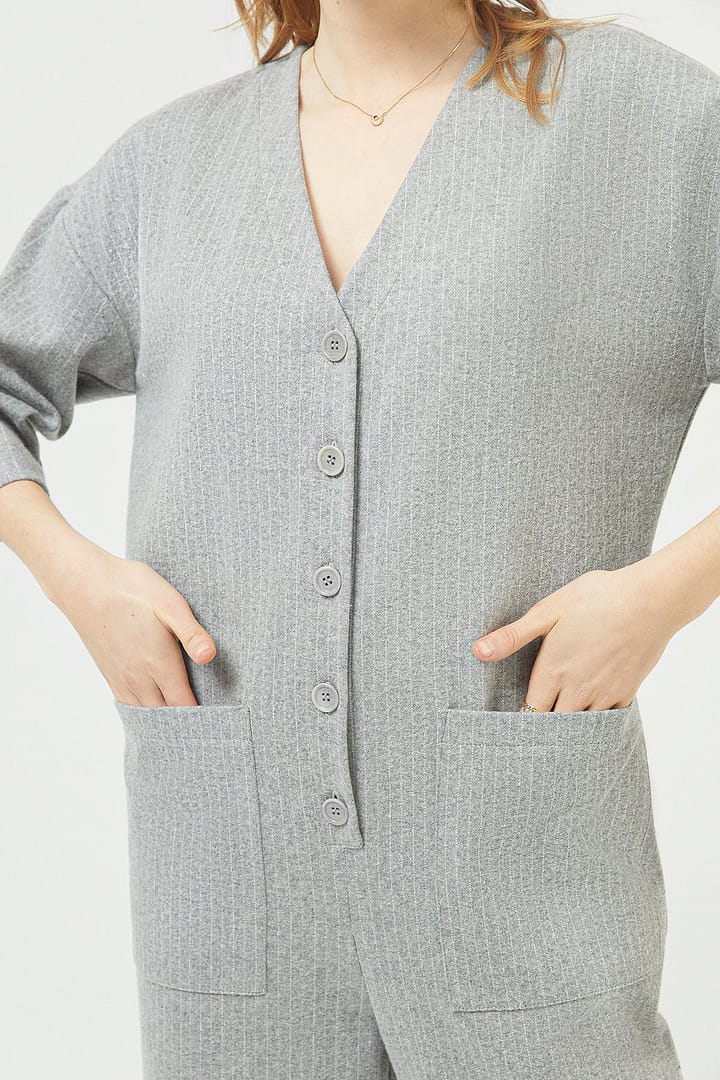 Fabric : %63 COTTON %34 PESS. %3 ELASTAN 3/4 Sleeves Button Detailed at the Front Long Jumpsuit