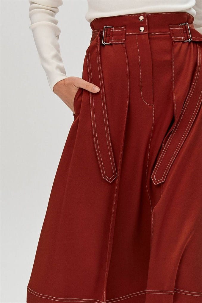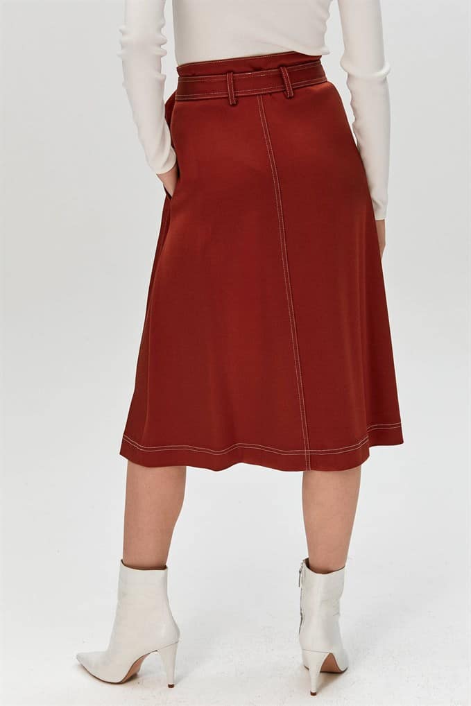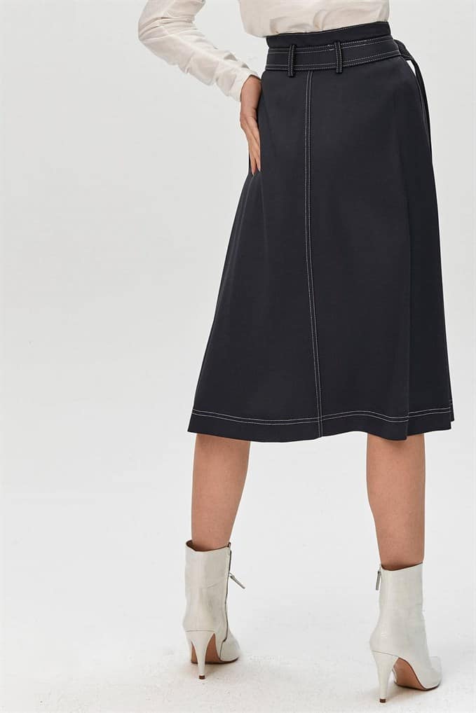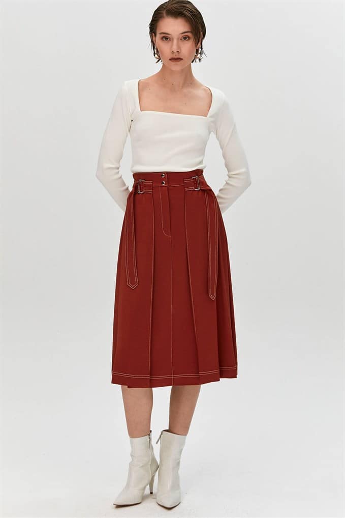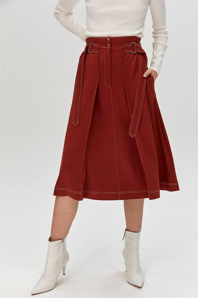 High Waist Midi Skirt Featuring Side Waistbands With Metal Buckles And Snap-Buttons Fastening On The Front.  %66 Acrylic %26 Viscon %5 Wool %3 Elastan