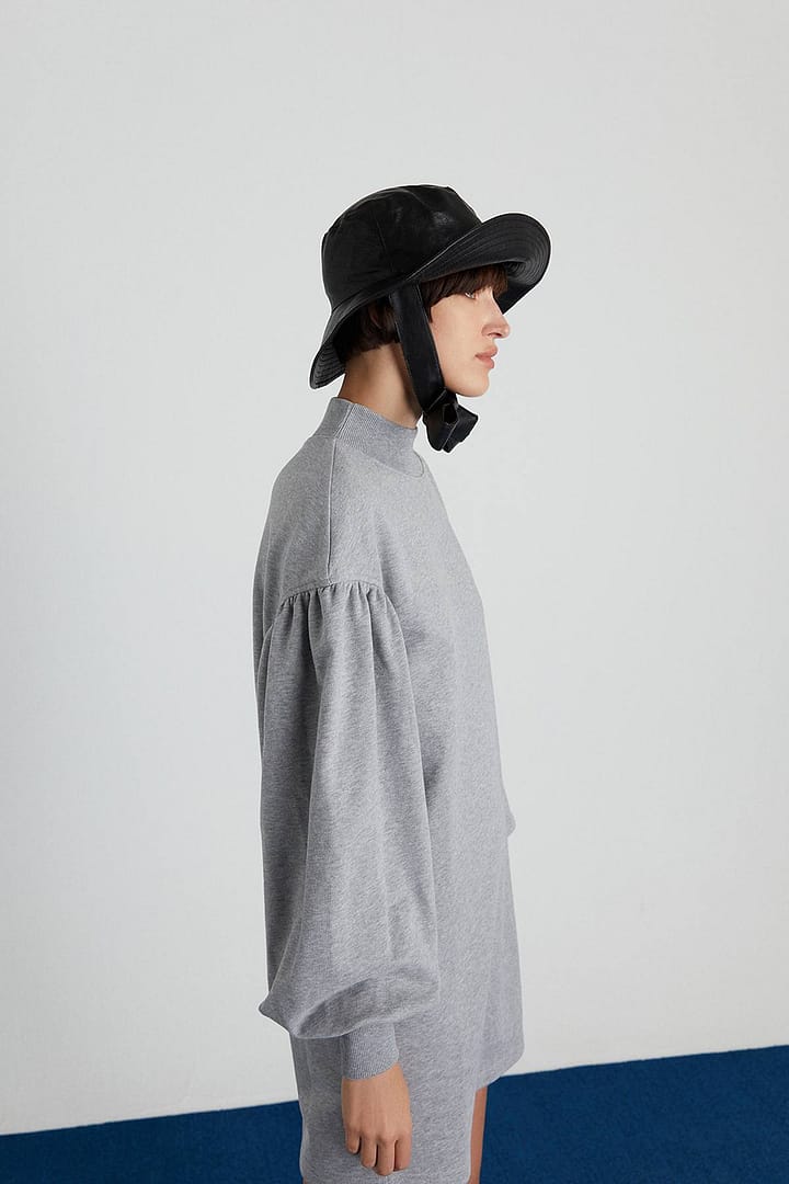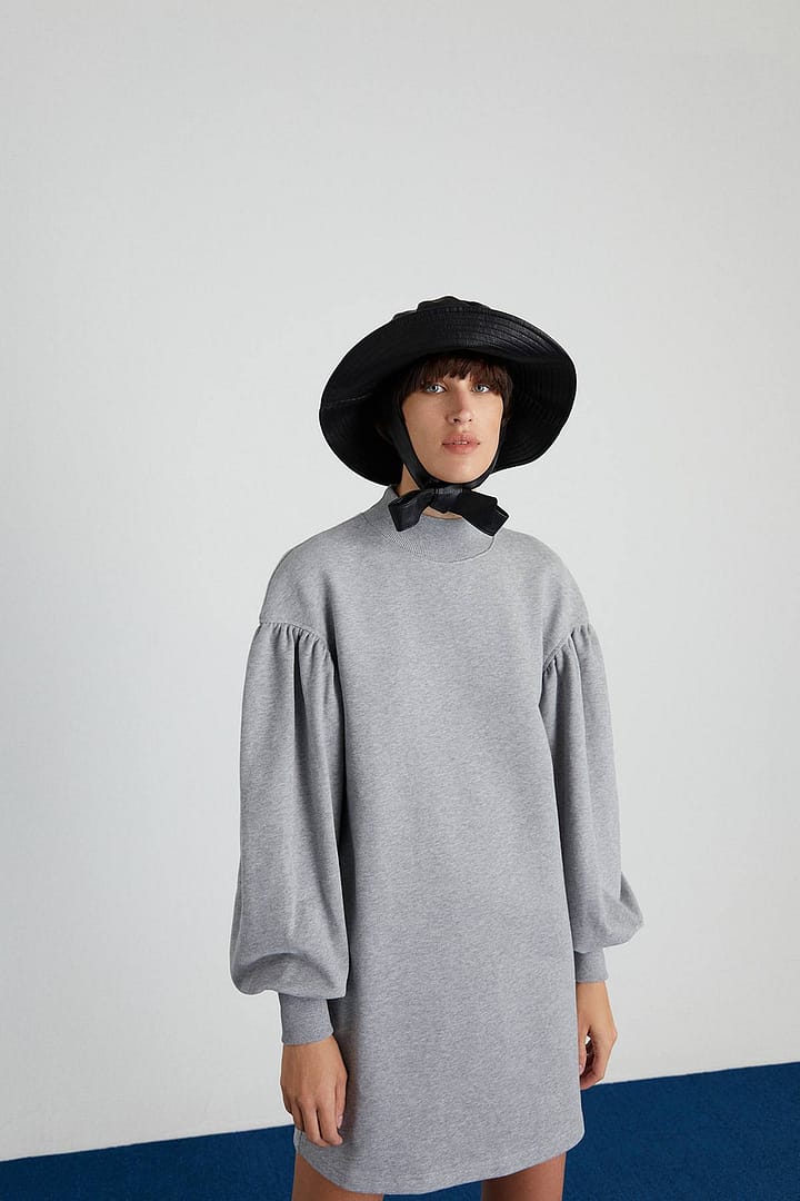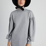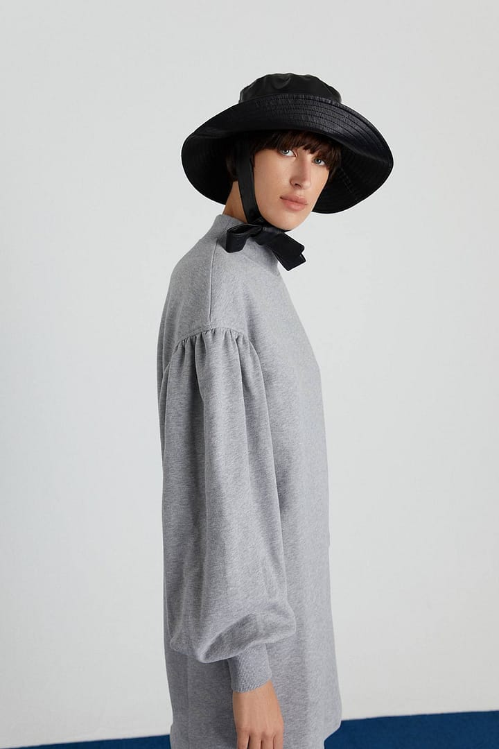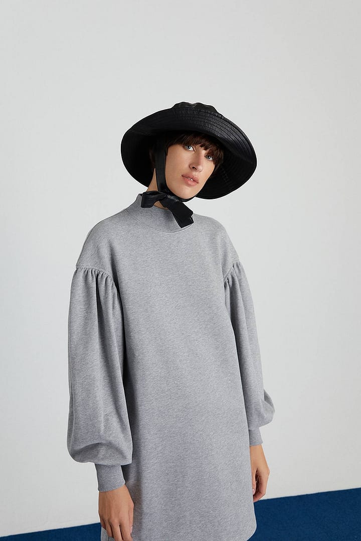 | Low-Shouldered Mini Dress With Pleated Sleeves. %100 Cotton Model: Height: 180 Chest: 85 Waist: 61 Hips: 89/36 |