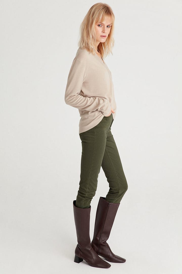 High-Waist Textured Pocket Detailed Metal Hook, Button and Zip Fastening