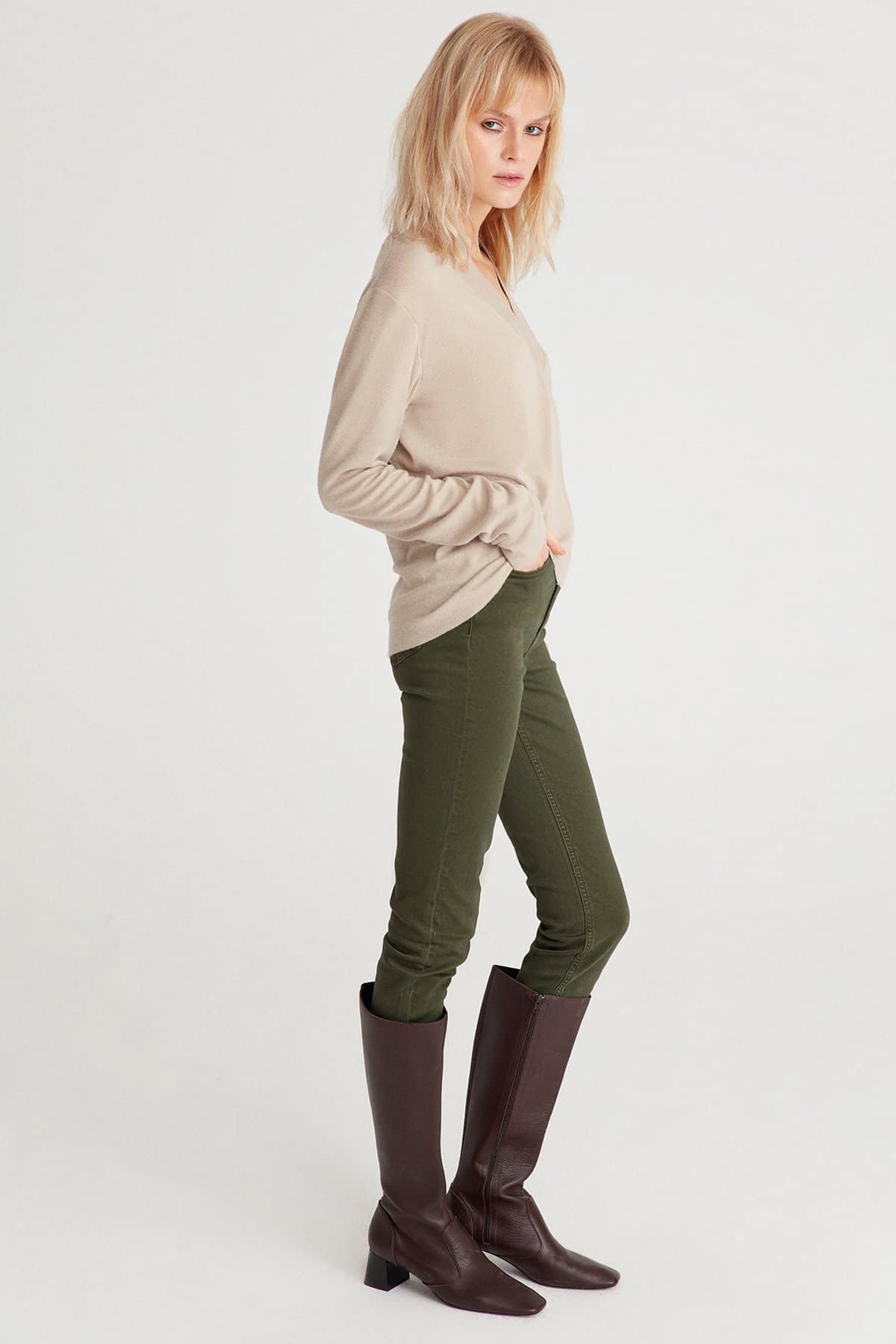 High-Waist Trousers With Double Waistband And Contrasting Stitched Details. Zip Fly And Metal Snap Front Fastening. %66 Acrylic %26 Viscon %5 Wool %3 Elastan