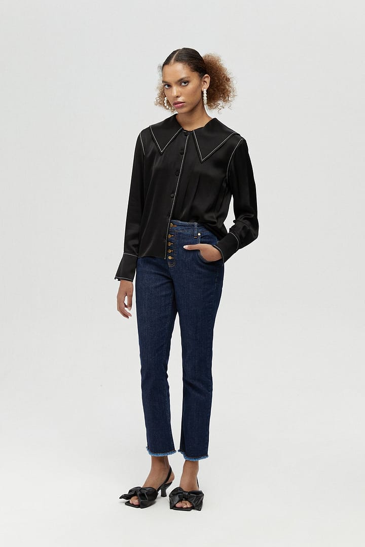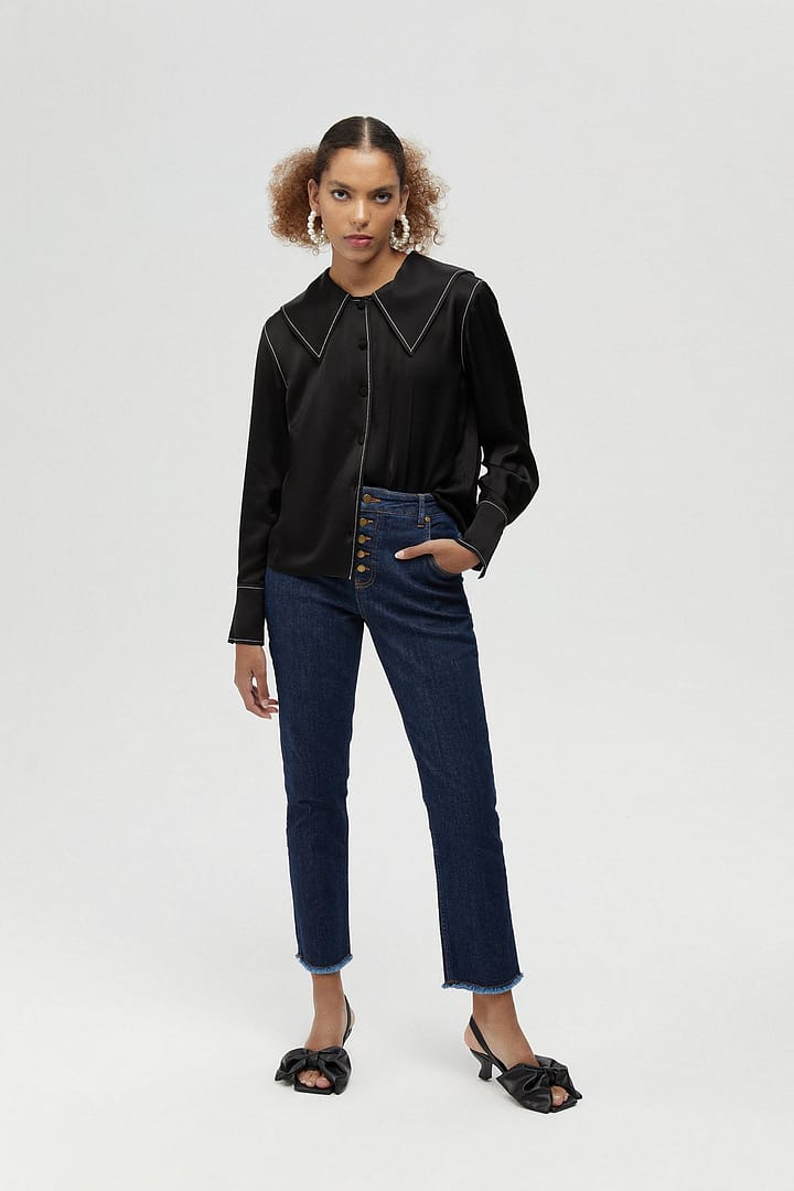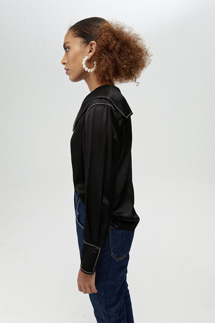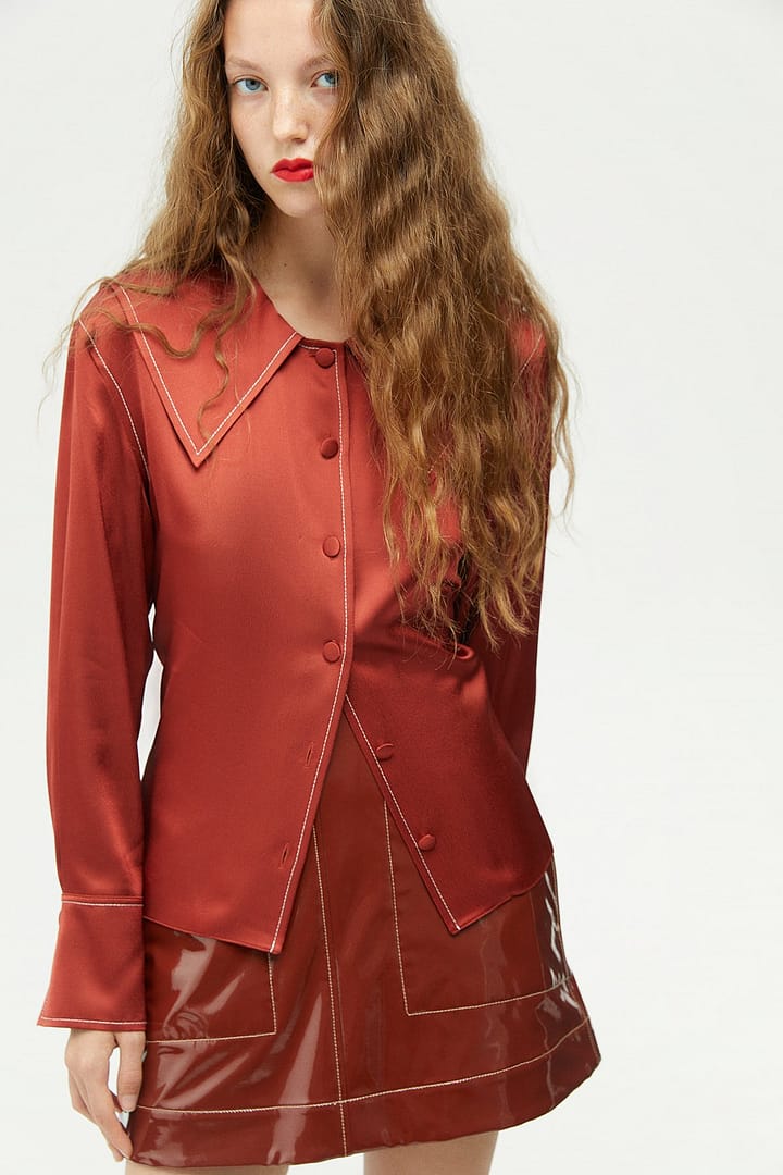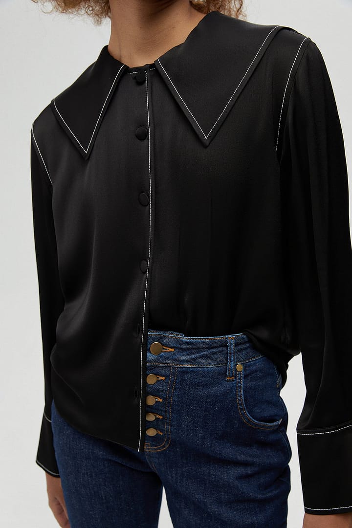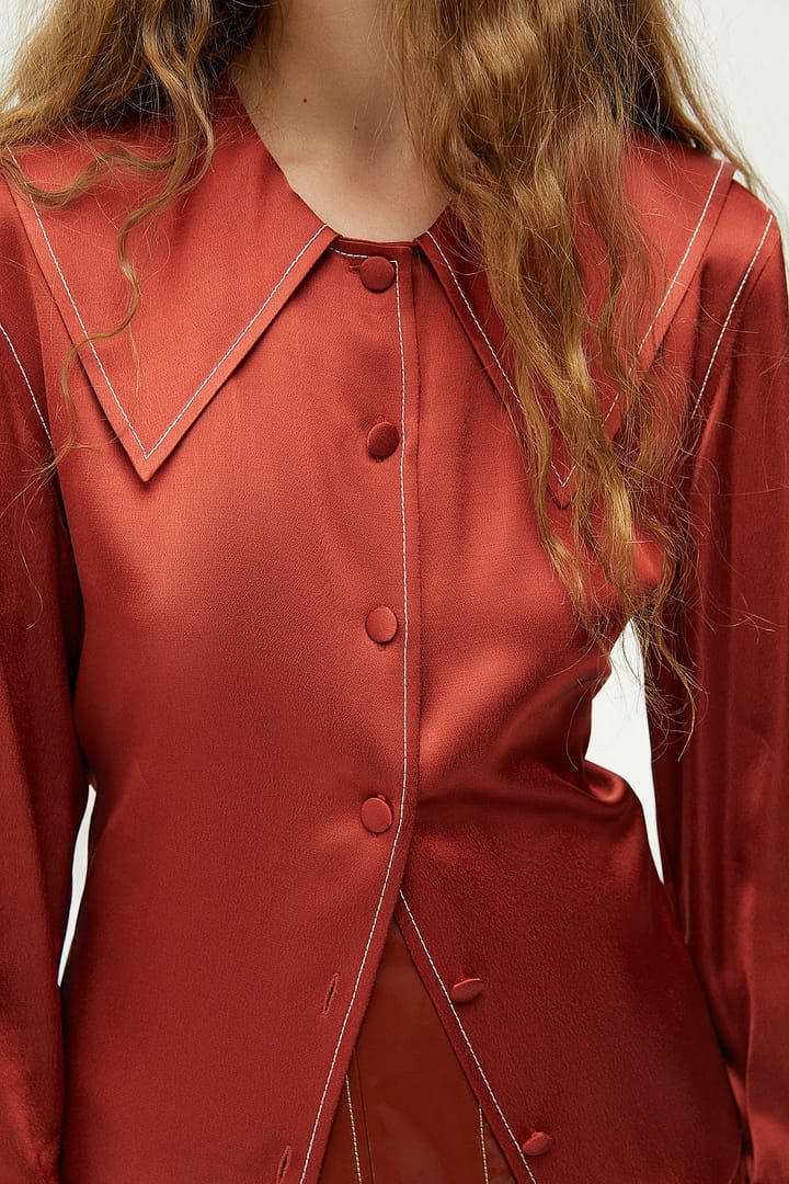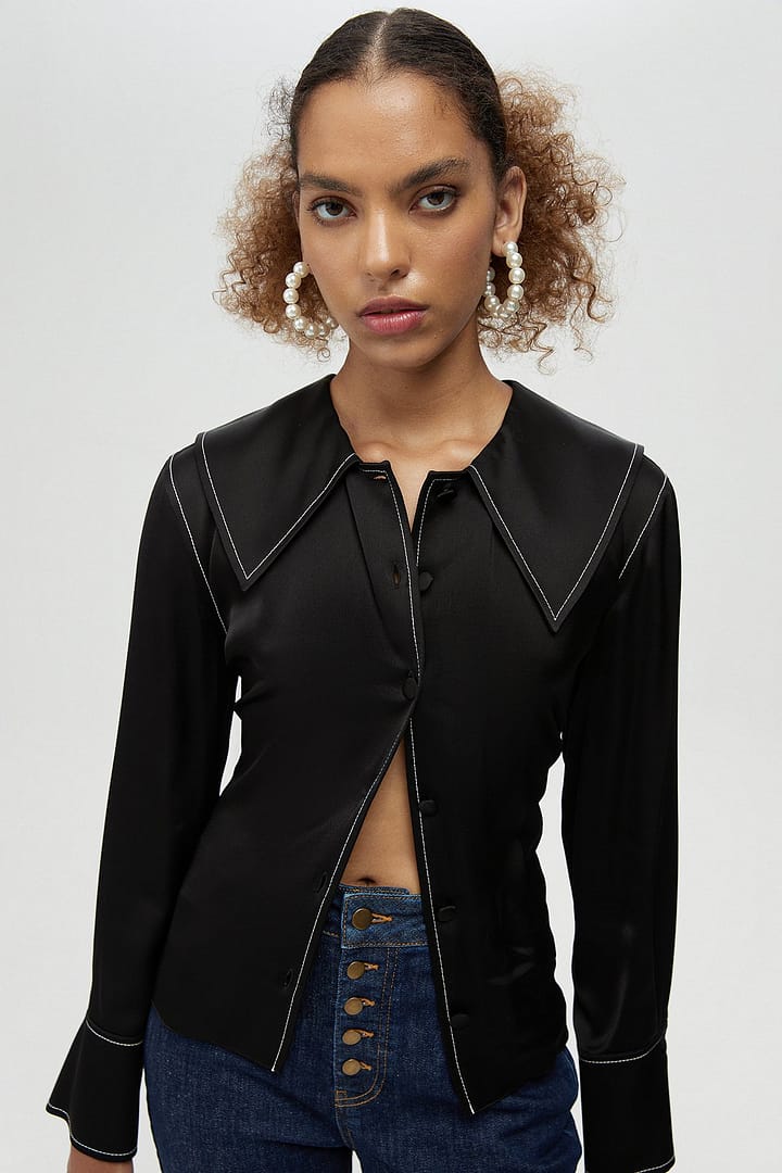 Wide Collared Satin Shirt