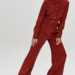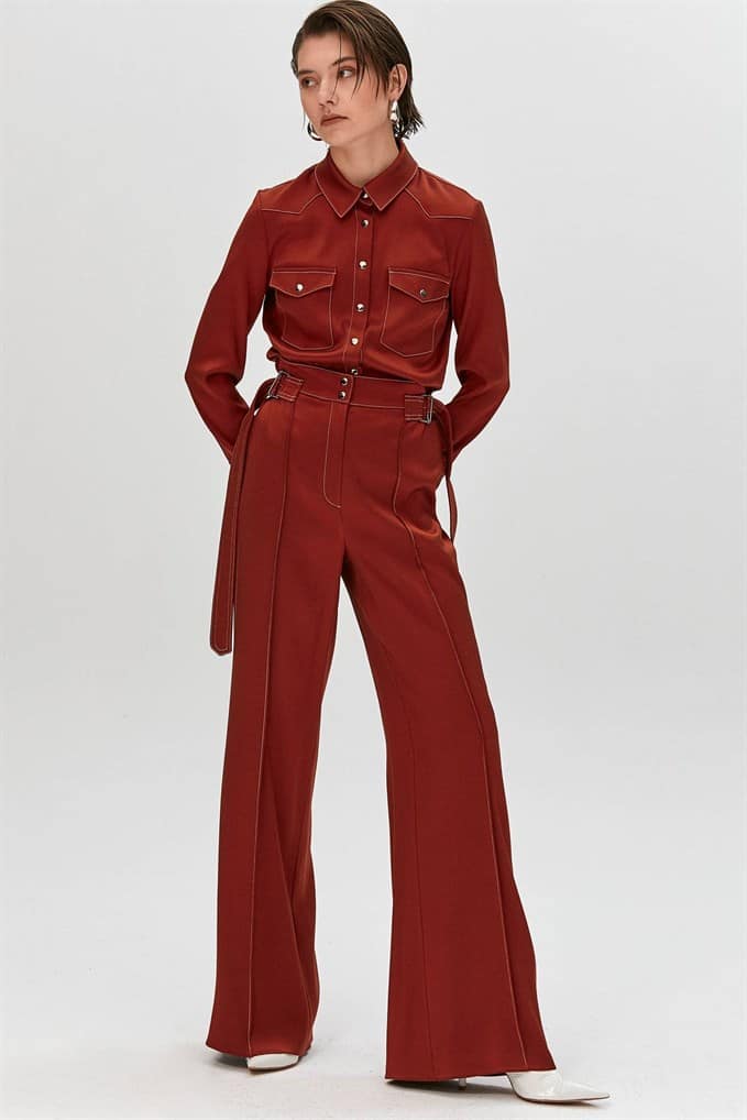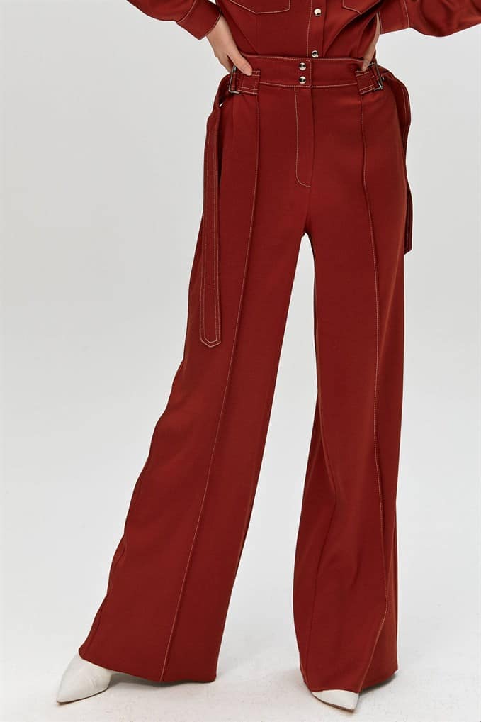 | High-Waist Trousers With Double Waistband And Contrasting Stitched Details. Zip Fly And Metal Snap Front Fastening. %66 Acrylic %26 Viscon %5 Wool %3 Elastan |